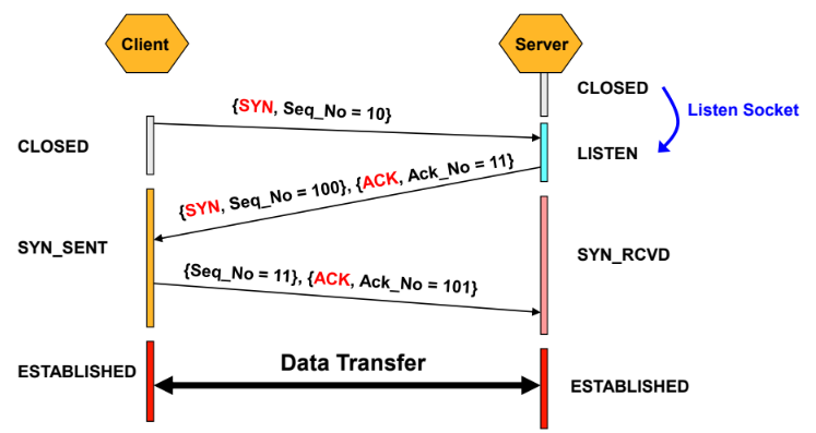 3-Way Handshake가 성공한 후에 양측 간에 연결이 된 상태에서 발생합니다.